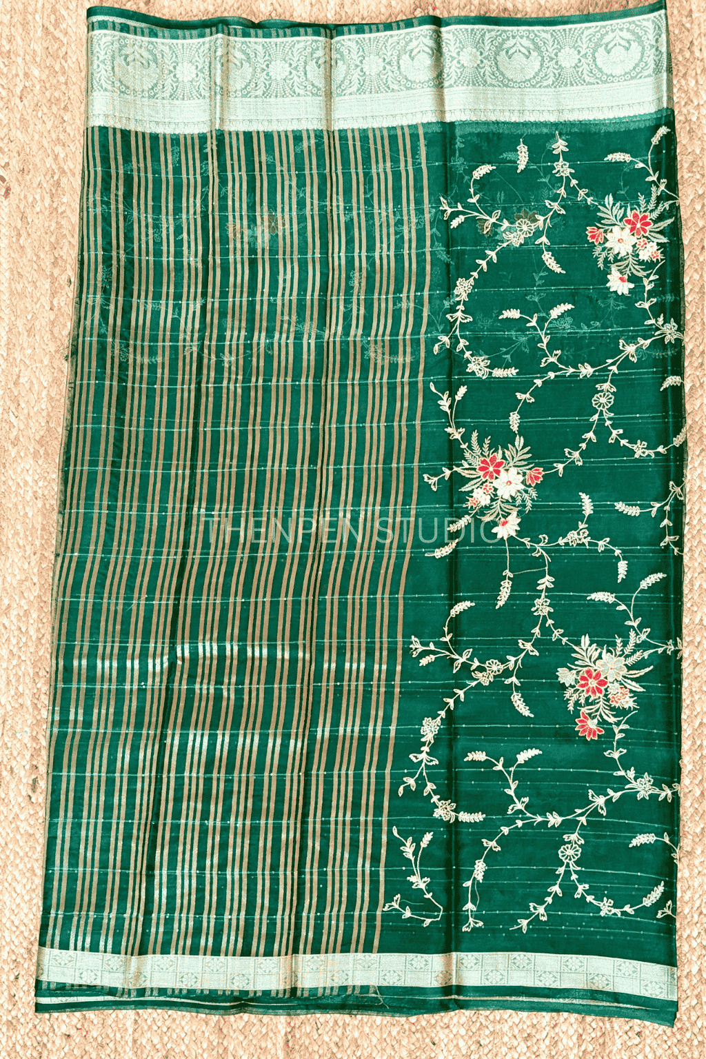 Embrace the grace of the Banarasi Saree, Skillfully designed and exclusively offered by Thenpen Studio.
